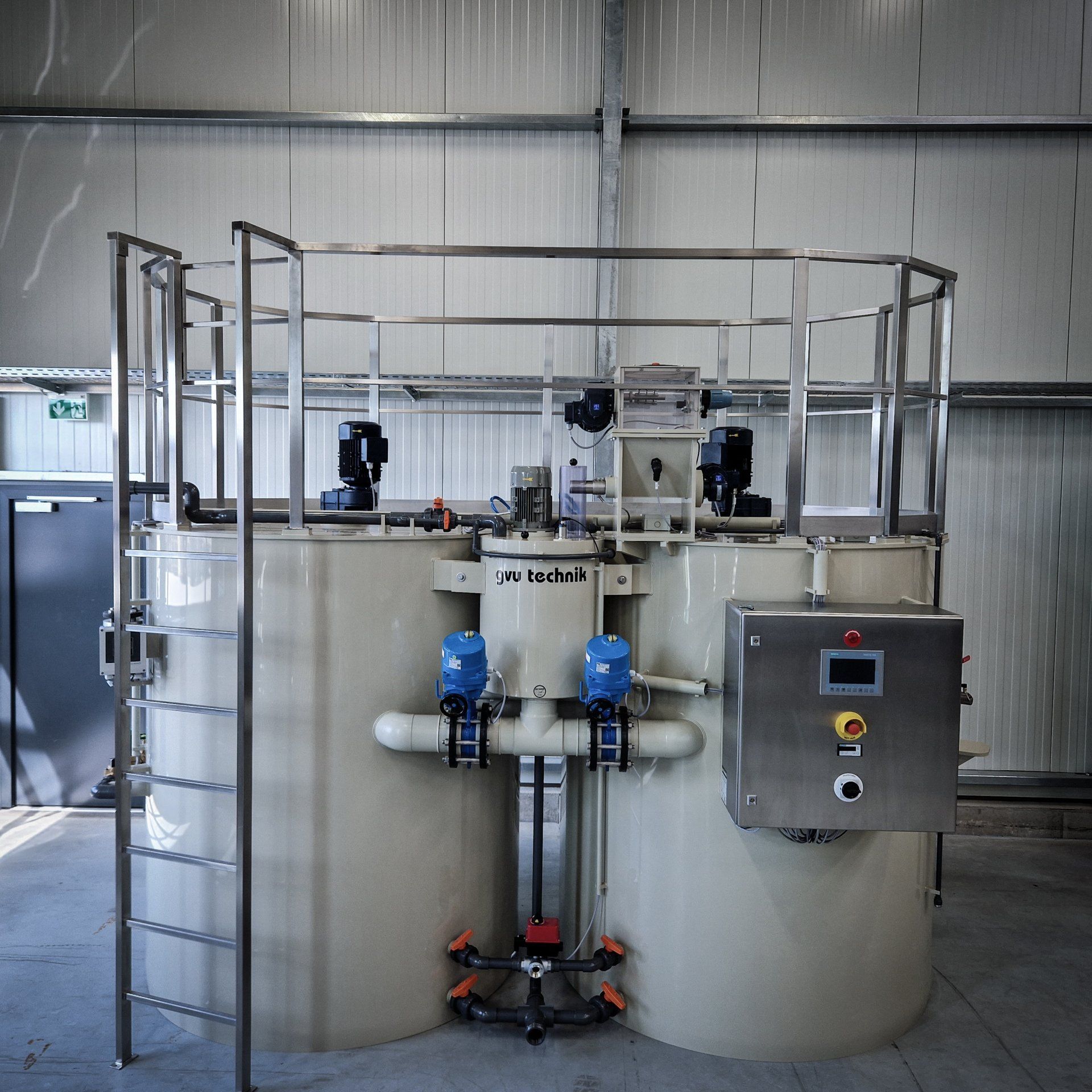 Durch die Rundbehälter wird die Polymerlösung mit den Rührwerken optimal beim Reifen unterstützen. Es entstehen keinen Totzonen.